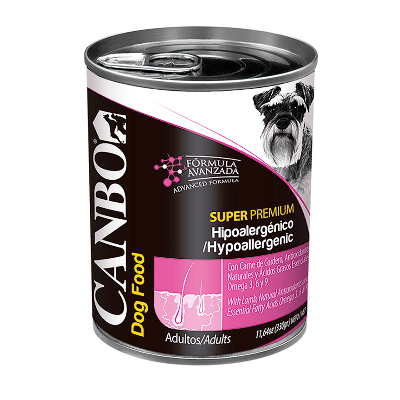 Canbo Enlatado Hipoalergénico es un alimento húmedo para perros adultos hipoalergénico, está elaborado con carne de cordero como fuente de proteína animal para ayudar a manejar las alergias alimentarias y además es de fácil digestión. Su contenido de ácidos grasos esenciales resulta beneficioso para el tratamiento de dermatitis por alergia alimentaria ya que favorece la actividad antiinflamatoria y promueve una mejoría de la barrera cutánea. Además, refuerza el sistema inmunitario y fortalece la salud en general de la mascota.